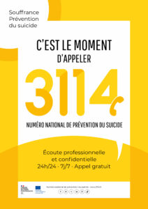 📞 En complément, nous rappelons le 3114 · Numéro national de prévention du suicide gratuit, confidentiel et accessible 24h/24 – 7j/7 pour les personnes concernées, leurs proches et les professionnels.