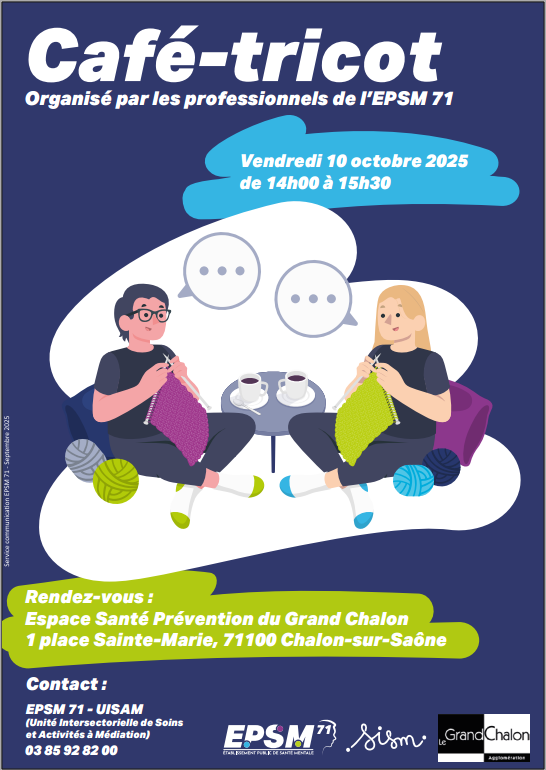 Cette séance ouverte à tous a pour but de destigmatiser et de communiquer sur la santé mentale et la psychiatrie (organisé en partenariat avec le Grand Chalon dans le cadre de l’édition 2025 des Semaines d’Information sur la Santé Mentale).