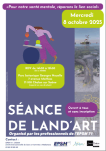 Ateliers, rencontres, débats…, l’EPSM 71 participe au collectif SISM et co-organise différents événements à travers de département de Saône-et-Loire durant cette quinzaine et notamment :